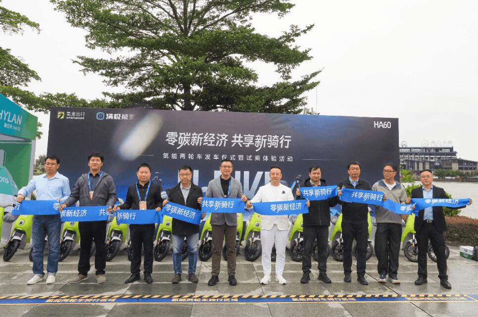 活動上,香港科創協會、香港生產力促進局、南國桃園、佛山環能院、粵港澳大灣區(廣東)創新創業孵化基地等領導以及重要合作伙伴一同為“零碳新經濟 共享新騎行”氫能兩輪車的批量發車儀式剪彩。