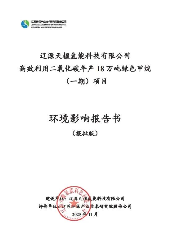 近日,吉林省生態(tài)環(huán)境廳發(fā)布遼源天楹氫能科技有限公司高效利用二氧化碳年產(chǎn)18萬噸綠色甲烷(一期)項(xiàng)目環(huán)境影響報(bào)告書受理情況公示。
