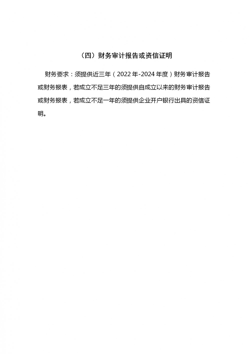 3.財務要求:須提供近三年(2022年-2024年度)財務審計報告或財務報表,若成立不足三年的須提供自成立以來的財務審計報告或財務報表,若成立不足一年的須提供企業開戶銀行出具的資信證明。